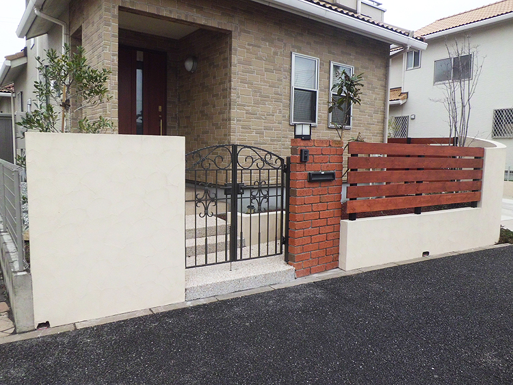 左右のデザインを変えることでアクセントをつけた門袖。