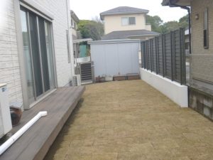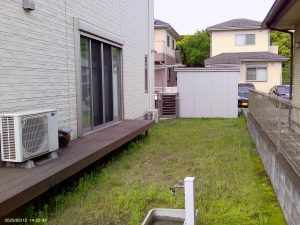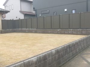 隣地とのフェンスには目隠し用のフェンスを設置しました。芝も貼り換えました。