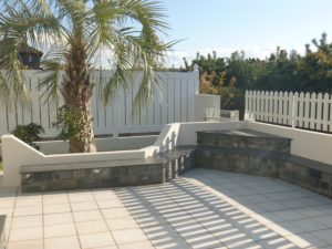 土台もブロックにモルタルを塗り、白系のジョリパットで仕上げました。